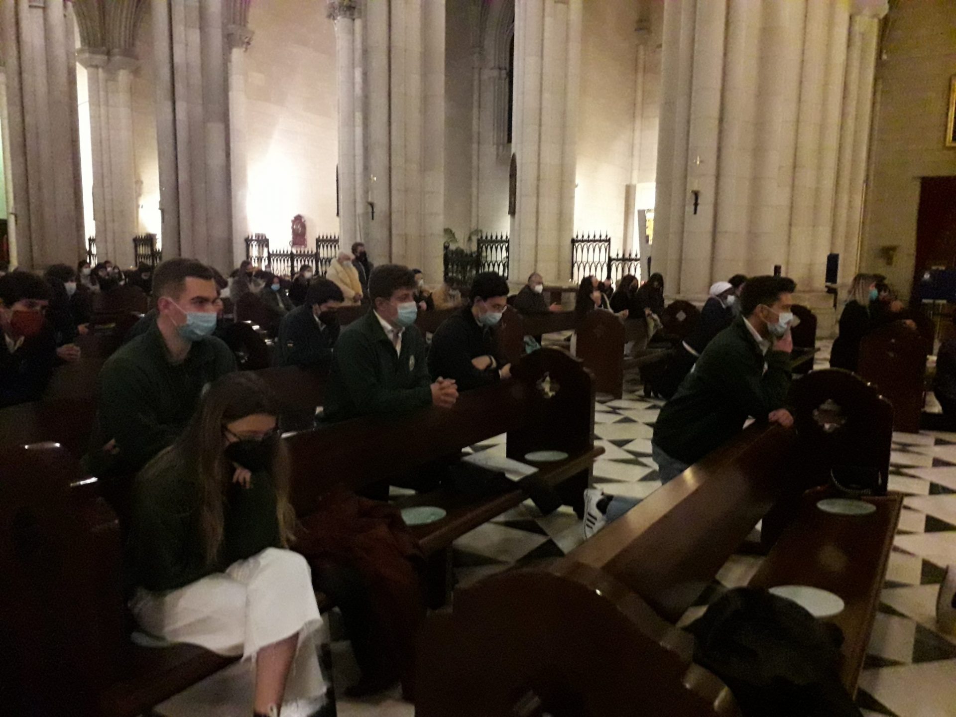El pasado viernes, 5 de marzo de 2021, un grupo de colegiales del Colegio Mayor Universitario San Agustín participó en la adoración de la eucaristía convocada por el Arzobispo de Madrid, Monseñor Carlos Osoro, en la Catedral de Nuestra Señora de la Almudena, para compartirla con los jóvenes universitarios. Nuestros colegiales, acompañados por el Prior de la comunidad local, el P. Carlos José Sánchez, y el coordinador de pastoral, el P. Aldo Marcelo Cáceres, participaron activamente en las actividades que se propusieron desde la pastoral universitaria conjunta como el coro, las lecturas o el ofrecimiento de un testimonio personal de fe.